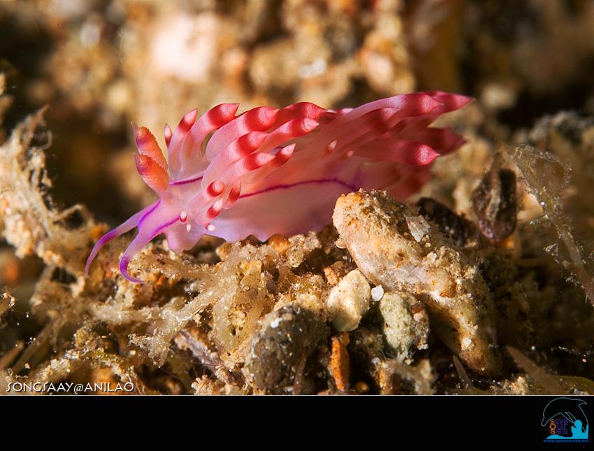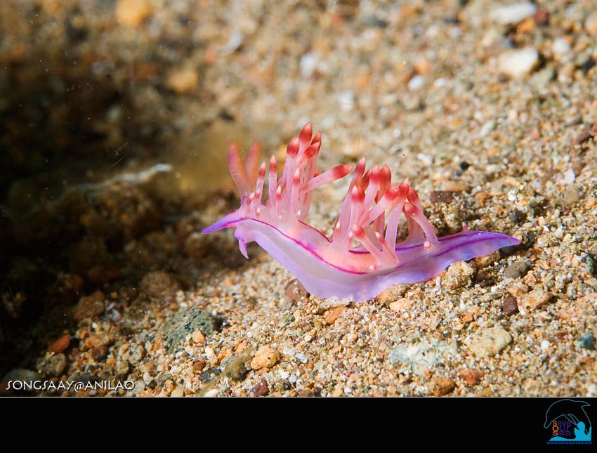 นอกจากกุ้ง หอย ปู ปลา แล้ว ที่ Secret Bay ยังมีทากทะเลมากมายให้ชม......ตั้งแต่ตัวเล็กๆไปจนถึงตัวใหญ่ๆ อย่างเช่น ทากขน พันธุ์ Flabellina bicolor ตัวเล็กจิ๋วเหมือนเส้นด้ายตัวนี้....