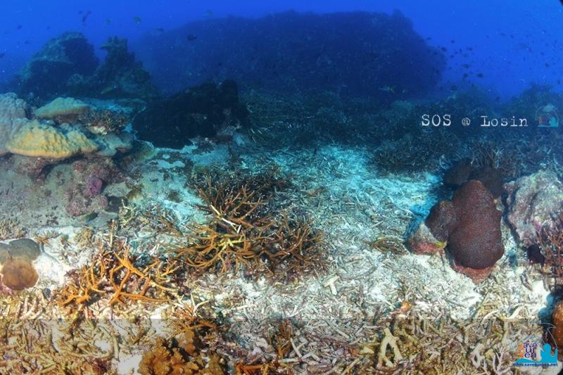 ด้านเหนือและด้านตะวันออกเฉียงเหนือ 9 โมงเช้า ได้เวลาลงดำน้ำทำงานไดฟ์แรก ที่กำหนดให้เป็นด้านเหนือของกองหินกระโจมไฟ เกาะโลซิน ซึ่งเป็นกองหินที่อยู่เหนือน้ำ พื้นที่ราว 10 ตารางเมตร เพื่อที่เราจะได้นำพวงมาลัยมะลิเล็กๆ ไปไหว้พี่ไมโล (ผู้อาวุโสที่รักโลซินมากและได้เสียชีวิตไปเมื่อหลายปีก่อน และเราได้แบ่งอัฐิของท่านมาไว้ที่นี่) พอเสร็จพิธีแล้ว เราจะได้ทำงานกันต่อไปได้ทันที ลมเริ่มพัดมาฉิวๆ มองจากบนเรือ กระแสน้ำเริ่มไหลแรง บางจุดเห็นเหมือนน้ำเดือด อย่างที่เราเคยเห็นแถวเกาะโคโมโด ในอินโดนีเซีย ซึ่งพอเห็นแล้ว เราก็ชักจะหวั่นๆ ว่า การดำน้ำทำงานที่โลซินเช้านี้ คงจะไม่หมูอย่างเคยแล้ว เราแบ่งกลุ่มดำน้ำเป็น 5 กลุ่ม โดยกลุ่ม 1 และ 2 กระโดดลงไปก่อน ซึ่งสองกลุ่มนี้ดูจะลงดำน้ำไปได้เรียบร้อยดี ไม่มีปัญหา แต่พอกลุ่มที่ 3, 4 และ 5 ที่มีสายน้ำกับสายชลรวมอยู่ด้วย พากันกระโดดลงน้ำตามๆ กันลงไปนั้น เราเริ่มเจอปัญหา เหตุเพราะเรือจอดห่างเกาะโลซินมากไปหน่อย แถมยังลอยเรืออยู้ใต้กระแสน้ำอีกด้วย พอเรากระโดดลงไป กระแสน้ำที่แรงอย่างที่ไม่เคยเห็นแถวโลซินมาก่อน ก็พาเราลอยละล่องไปไกลจากกองหิน ระดับน้ำเริ่มลึกมากขึ้นเรื่อยๆ จนขนาดที่เรามองไม่เห็นพื้นทรายเบื้องล่าง หลังจากอยู่ใต้น้ำได้ 10 นาที และไม่มีทีท่าว่ากระแสน้ำจะพาเราเข้าไปใกล้ตัวเกาะแน่นอนแล้ว เราตัดสินใจลอยตัวสูงขึ้นข้าๆ หลังจากทำ Safety Stop ครบแล้ว เราก็ลอยตัวขึ้นสู่ผิวน้ำ แล้วก็พบว่าตัวเราลอยไปไกลจากเกาะโลซินกว่า 200 เมตร และเมื่อปีนกลับขึ้นเรือวีนัสที่แล่นมารับ ก็พบว่ามีสมาชิกกลุ่ม 1-5 ไหลตามน้ำไปไกลเหมือนเราด้วยกว่า 10 คน ดื่มน้ำและพักพอหายเหนื่อยแล้ว เราก็ใส่อุปกรณ์ดำน้ำอีกครั้ง แล้วให้เรือแล่นไปส่งบริเวณเหนือกระแสน้ำและใกล้ๆ ตัวเกาะโลซิน คราวนี้ไม่มีปัญหา พอหัวจมน้ำ กระแสน้ำก็พาเราลงไปใต้ทะเลใกล้ยอดหินกระโจมไฟ ตรงจุดที่เราต้องการพอดี สภาพใต้น้ำที่โลซินวันนี้ ไม่เหมือนเดิม นอกจากกระแสน้ำจะแรงแล้ว น้ำยังไม่ใสแจ๋วเหมือนเคย ใกล้ผิวน้ำ ทัศนวิสัยค่อนข้างดี แต่พอลึกเกิน 10 เมตรลงไป น้ำเริ่มขุ่นเหมื่อนมีแป้งมันผสมน้ำอยู่ สภาพดงปะการังด้านเหนือเริ่มฟื้นตัวขึ้นกว่าเมื่อสองปีก่อน แม้จะมีร่องรอยการหักของปะการังเขากวางและปะการังโต๊ะ อยู่หลายจุดบ้างก็ตามที