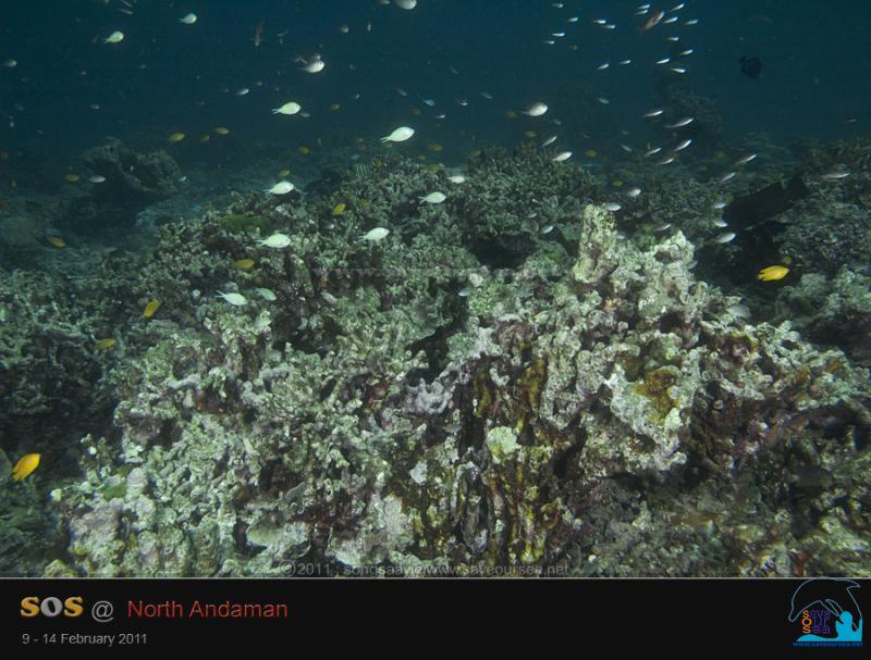 ปะการังในบริเวณที่เรามุ่งหน้าไป ดูจะมีสภาพที่ดีขึ้น คือมีการตายน้อยลงกว่าที่เราว่ายผ่านมา...