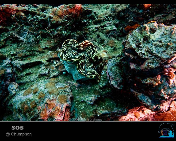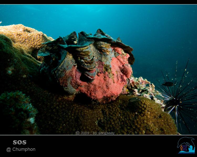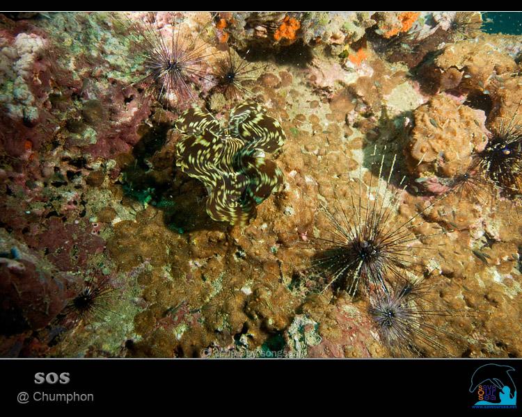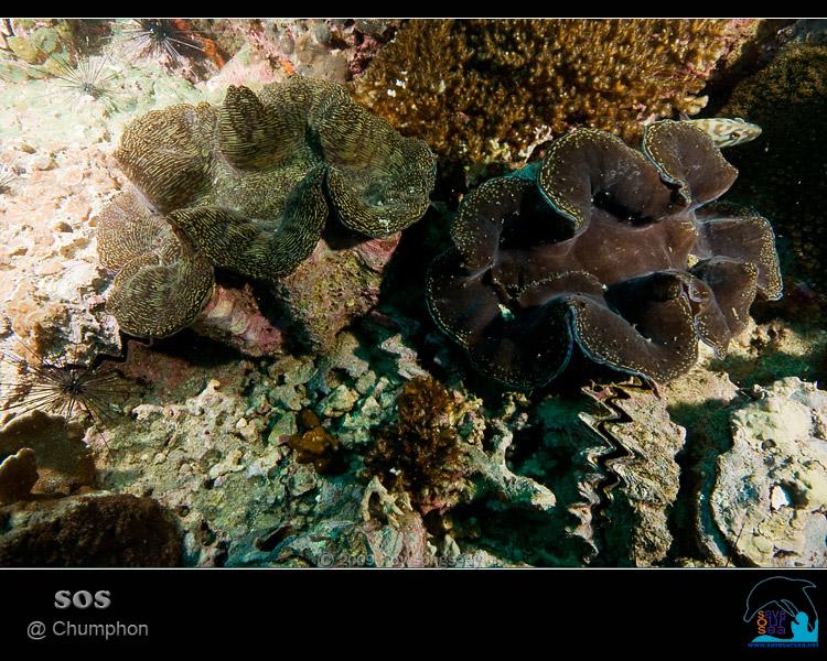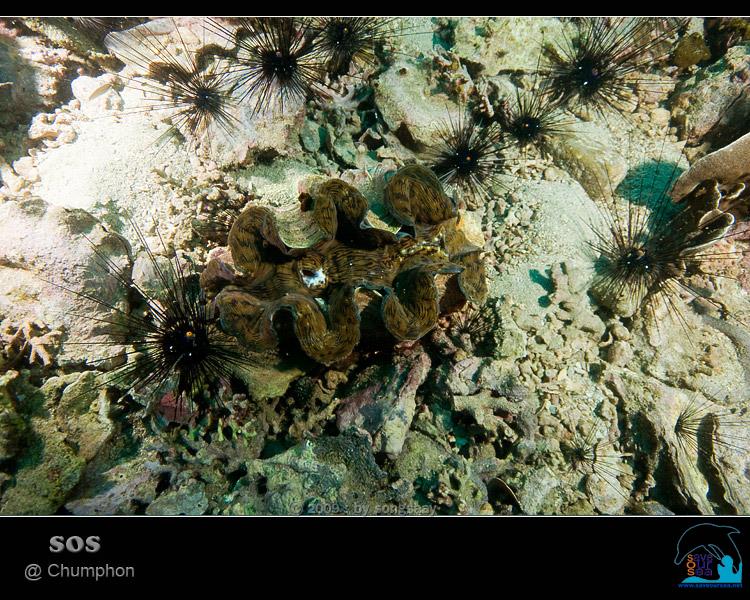 เราได้พบหอยมือเสือหลายตัวที่เคยถูกนำมาปล่อยที่นี่เมื่อหลายปีก่อน....ซึ่งบัดนี้ตัวโตเกือบฟุต