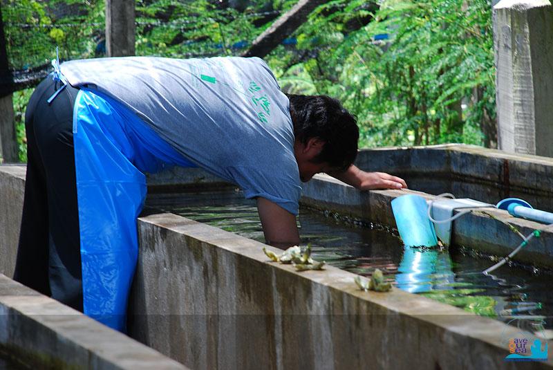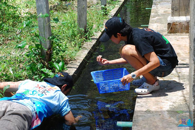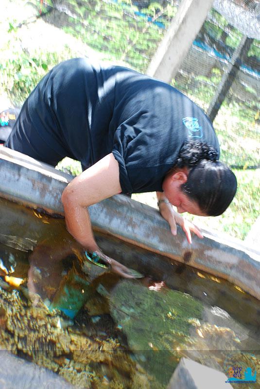 งานที่พวกเราทำมีทั้งการช้อนขี้แดด หรือตะไคร่น้ำออกจากบ่อ สิ่งมีชีวิตพวกนี้ ถ้ามีเยอะเกินไปมันก็จะไปบดบังรบกวนการสังเคราะห์แสงของสาหร่ายในหอยมือเสือ สมาชิกบางส่วนทำหน้าที่ถอนเก็บสาหร่ายที่อยู่ในบ่อ บ้างก็ดูดตะกอนที่อยู่ในบ่อ