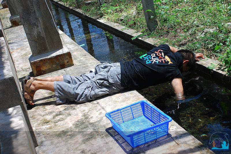 บ่อล่างสุดที่เป็นส่วนของทางระบายน้ำนั้นดูท่าจะเป็นจุดที่ทำงานยากที่สุด สมาชิกถึงขั้นล้มตัวลงนอนตัวแนบพื้นเลยทีเดียว