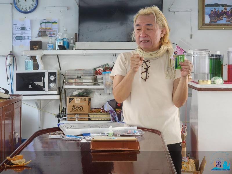 หลังจากนั้น ก็เป็นเวลาของอาหารเช้า และ พี่หมอเบ็ตตี้ ก็ได้มาบรรยายเรื่อง #ภูมิแพ้ระหว่างไปดำน้ำใช้ยาอะไร? ซึ่งส่งผลให้นักดำน้ำไม่ค่อยสบายตัวนัก ทั้งเรื่องระบบการหายใจ และ ผื่นคัน โดยเน้นที่ระบบการหายใจ สำหรับยาที่ช่วยเรื่องภูมิแพ้ ไม่ว่าจะเป็น Zytex หรือบรรดา ซูโดทั้งหลายแหล่ ก็สามารถช่วยได้ และ ออกฤทธิ์ ได้ 4-6 ชั่วโมง จึงควรกิน ก่อนนอน เพื่อให้มีฤทธิ์ กดภูมิ สำหรับคนที่แพ้ สามารถกินยาแก้เมา ที่ลดความโคลงเคลง ได้ และอธิบายถึงโพรงจมูกที่ มีขนช่วยกรอง และ ดักจับสิ่งแปลกปลอม ที่สามารถเข้าไปได้ทำให้เรารู้สึกระคายเคือง จึงมีการไอและจามออกมา