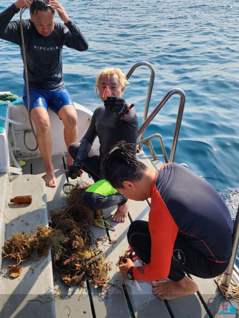 7.00 น.... ดำน้ำเก็บขยะ / แพจมบุญสูง 11.00 น....ดำน้ำเก็บขยะ / เรือ ต 13 12.00 น....พักรับประทานอาหารกลางวัน และพักผ่อน 14.00 น....ดำน้ำเก็บขยะ / เรือ ต 13 Dive 13 แพจมบุญสูง วันสุดท้ายของทริป เป็นการดำที่ตื้นและเลียบชายฝั่ง เขาหลัก เริ่มจากแพบุญสูง แน่นอนเลยวส่าต้อง Zebra Moray เป็นของแน่นอน Lion Fish , Puffer Fish และ ทากมากมาย เกาะตามโครงสร้างแพที่จมลง ณ ที่นี้เป็นจุดที่เราได้เก็บซากอวน เบ็ดญี่ปุ่น และ ขยะใต้น้ำ ซึ่งพบว่าทุกกลุ่มก็ได้เก็บขึ้นมา ไม่ใช่น้อย สันนิษฐานว่ามาจากการพัดมาจากเรืออวนที่อยู่กลางทะเล ทิ้งลงมาและเบ็ดที่มีการตกปลา เนื่องจาก แพเป็นที่รวมของสัตว์น้ำมาอาศัยอยู่ ระยะเวลาองการดำประมาณ 50 นาที ก็ขึ้นมา เรือก็เคลื่อนไปที่เรือ เรือ ต 13 เพื่อลงในไดร์ต่อไป พวกเราเพลินเพลินกับขาหมู และ อาหารเช้าที่เอร็ดอร่อย |