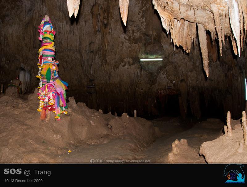 ห้องโถงนี้ มีหินงอกชิ้นใหญ่ แต่ปัจจุบัน ดูเหมือนจะไม่ได้มีความหมายแค่เป็นหินงอกเสียแล้ว เพราะมีผ้าแพรเจ็ดสีผูกพันไว้รอบ พร้อมพวงมาลัยห้อยเต็มไปหมด ไม่เชื่อก็อย่าลบหลู่ครับ ....