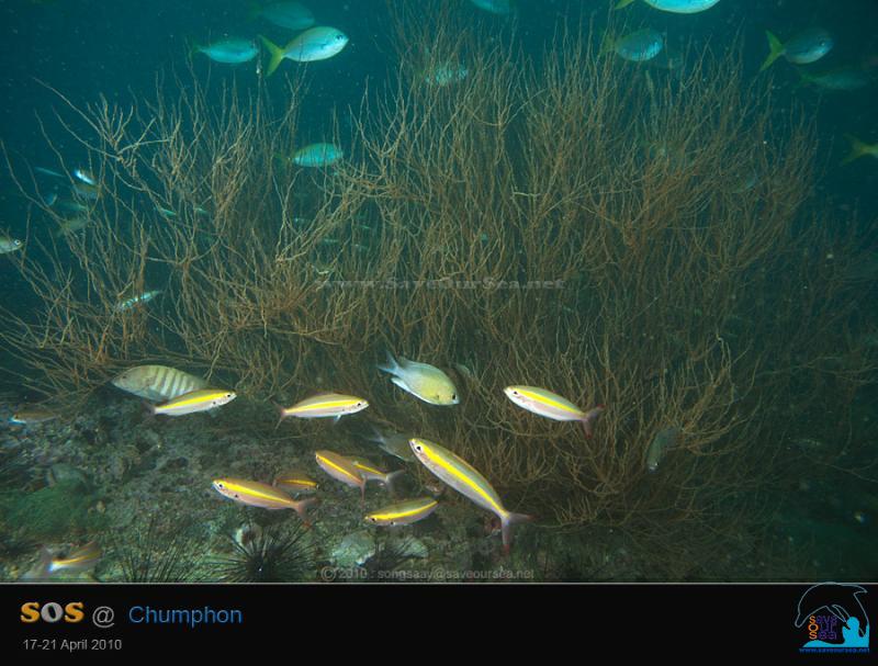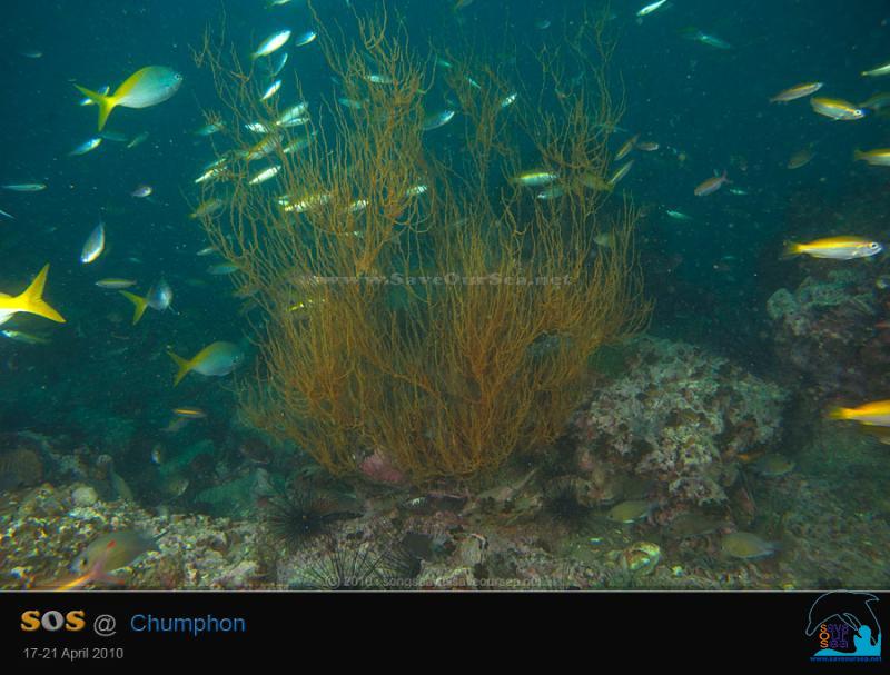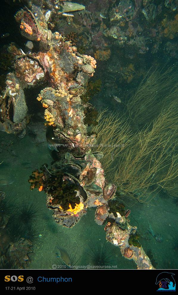 เชือกปากอวนบางส่วนมีปะการังแข็งขึ้นคลุมแล้ว....