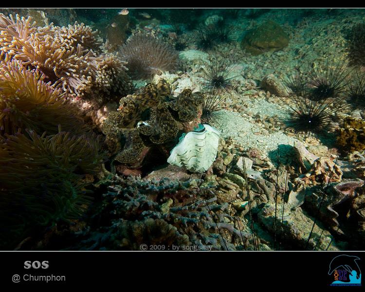 ที่ทำให้ตกใจและเศร้าใจคือ เปลือกหอยมือเสือสองตัวถูกขบกัดจนแหลก เนื้อหอยไม่เหลือเศษซากให้เห็น