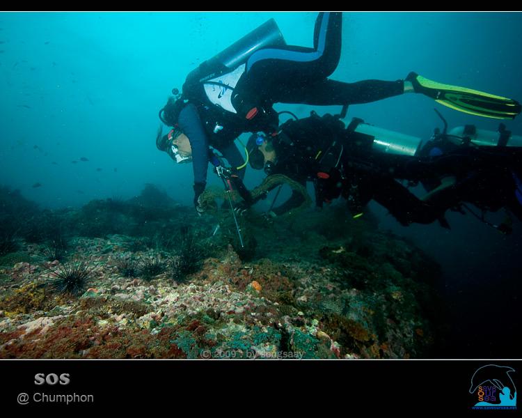 ความสุขของพวกเรา ดูจะอยู่ที่การได้ช่วยกันทำงานตัดอวนใต้ทะเลให้หมดเกลี้ยง....