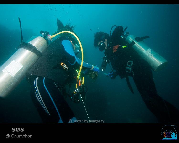 อยากเห็นเสียแล้วสิคะว่า.......เจ้าเต่าตัวนั้นที่มาขบกัดกร้วมๆกินเนื้อน้องหอยว่าตัวใหญ่สักแค่ไหน สองสายจึงเริ่มว่ายน้ำตามหารอบกองหิน.... ไม่พบเต่าค่ะ.....พบแต่พวกเราที่กำลังระดมกำลังตัดอวนกันอยู่อย่างเอาเป็นเอาตาย..... ดูท่าทางเหมือนกำลังเล่นกายกรรมกันอยุ่นะคะ