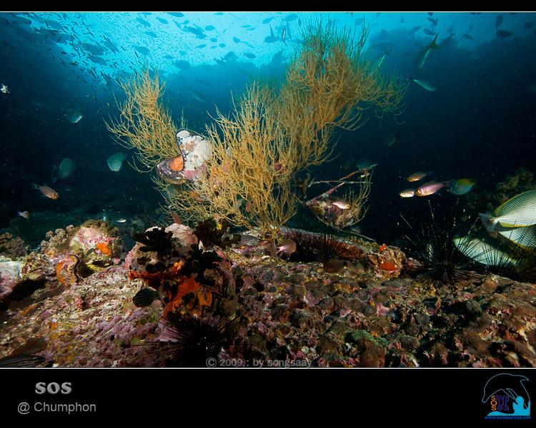 ปลามากมายหลายพันธุ์ยังคงแหวกว่ายอยู่ที่หินหลักง่าม.....