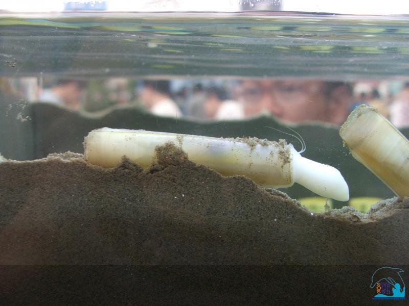 หอยหลอดที่เอามาโชว์ให้เห็นกันแบบทั้งตัวเค้าใช้วิธีเอาดินมาพอกไว้ที่ข้างตู้แล้วเอาหอยหลอดมาวางไว้บนดินส่วนตรงกลางตู้จะโล่งครับ