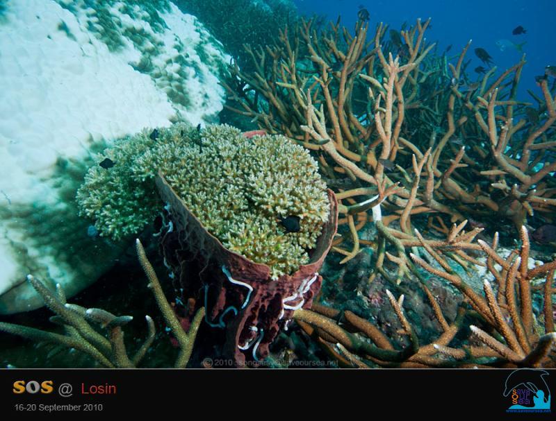 สิ่งแปลกปลอมที่ครั้งหนึ่งมนุษย์เคยเอามาทิ้งไว้ อาจจะกระทบกระแทกทำลายปะการังแหลกไปจำนวนไม่น้อย แต่เมื่อเจ้าของไม่มานำกลับไป นานวันเข้า...มันก็กลายเป็นที่ให้ปะการังเกิดใหม่ ได้เกาะติดสร้างสังคมใหม่ขึ้นมา 2 ภาพแรก เป็นภาพของปีที่แล้ว ที่เรามาพบลอบหลังนี้กองอยู่บนปะการัง และน้อง Octopus กำลังพยายามยกออกไปให้พ้นปะการัง และ 2 ภาพหลังเป็นภาพของปีนี้