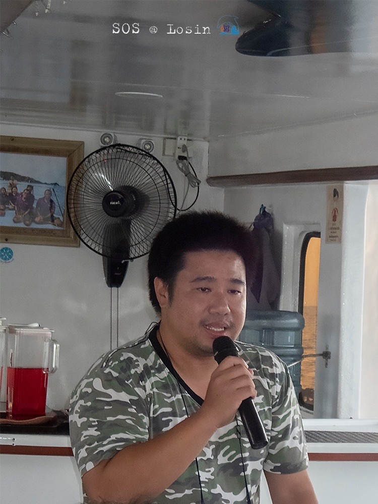 การสัมมนาทางวิชาการ เป็นธรรมเนียมปฏิบัติของชาว SOS ที่ในการออกทะเลมาทำกิจกรรมทุกครั้ง เราจะต้องเชิญนักวิชาการหรือไม่ก็สมาชิกอาสาสมัครของเราเอง มาให้ความรู้หรือเล่าเรื่องราวต่างๆที่มีแระโยชน์และน่าสนใจให้เราฟัง เพื่อเช่วยสริมความรู้และเพิ่มรอยหยักในสมองของเราเสมอ คราวนี้ มีนักวิชาการและสมาชิกของเรา 3 คน มาให้ความรู้แก่เรา คือ 1. น้องปาล์ม บรรยายเรื่อง โลซิน พื้นที่คุ้มครองทางทะเลแห่งใหม่ของไทย 2. น้องโดม บรรยายเรื่อง การฟื้นฟูอ่าวมาหยา 3. น้องพร บรรยายเรื่อง แพลงก์ตอนพืชกับ Climate Change การบรรยายเป็นไปด้วยความเรียบง่ายและเป็นกันเอง แต่พวกเราก็ได้รับความรู้เพิ่มขึ้น และมีความสุขสนุกสนานไปด้วยในตัว ขอบคุณน้องปาล์ม น้องโดม และน้องพร มากค่ะ