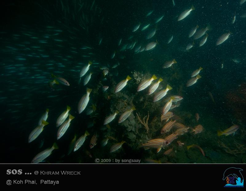 ปลาใหญ่น้อยแหวกว่ายอยู่ทั่วลำเรือ....