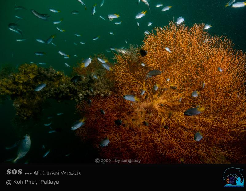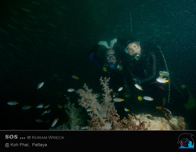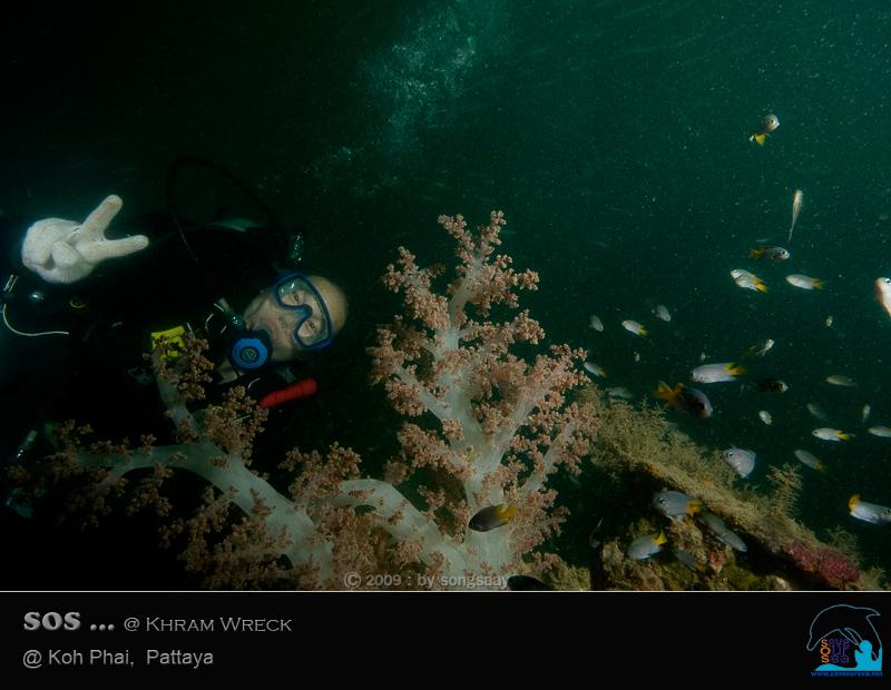 เราดำน้ำปล่อยหอยทั้ง 500 ตัว ใช้เวลาเฉลี่ยราว 50-70 นาที เหน็ดเหนื่อยกันถ้วนหน้า... จากนั้นก็รับประทานอาหารเที่ยงกันอย่างหิวโหย นั่งๆนอนๆพักผ่อนกันอยู่ราวสองชั่วโมง ก็โหวตกันว่าจะไปดำน้ำเก็บขยะตัดอวนกันที่ไหนดี เสียงเป็นเอกฉันท์ให้ลงดำน้ำที่เรือคราม เผื่อว่าจะมีอวนให้ตัดกันเหมือนที่เราเคยเจอมาแล้ว อีกทั้งน้องดู๋และน้องบ๊วยเองก็ไม่เคยดำน้ำที่เรือครามมาก่อน จึงอยากจะลงดำน้ำที่เรือครามมาก และหากจะมีอวนให้ตัดด้วยก็ยิ่งเป็นการดีใหญ่ เมื่อเสียงโหวตเป็นเอกฉันท์เช่นนี้ เราจึงให้เรือมารีนเคลื่อนไปผูกทุ่นที่เหนือเรือคราม และแต่งตัวกระโดดลงดำน้ำทันทีที่พร้อม ที่ผิวน้ำมีกระแสน้ำเล็กน้อย แต่เมื่อลงไปที่ความลึกเพียง 5 เมตร น้ำก็นิ่งสนิท เรือครามยังสวยงามและมีสีสัน ทั่วทั้งลำเรือถูกประดับประดาด้วยปะการังอ่อนสีหวานแหวว กัลปังหาหลากชนิดและสีสัน ฟองน้ำ เพรียง หอย และฝูงปลามากมาย