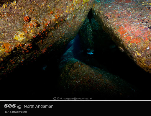 อย่างที่บอกไว้ครับ คลื่นลมเริ่มเบาลง เราจึงตัดสินใจไปลงดำที่ หินหัวกระโหลก Elephant Head Rock พอหัวมุดน้ำลงไปได้ Leader ของเราก็พากล้องมุ่งตรงไปยังจุดหมายทันที หินช่องกระจก หรือ Window of the Similans ...ฮิๆๆ จริงๆเค้าเรียกอะไรไม่รู้ เลยถือโอกาสตั้งชื่อมันซะเองเลย ลูกทีมก็เรียงคิวมาเข้ากล้องทีละคน ![]() ![]() ![]()