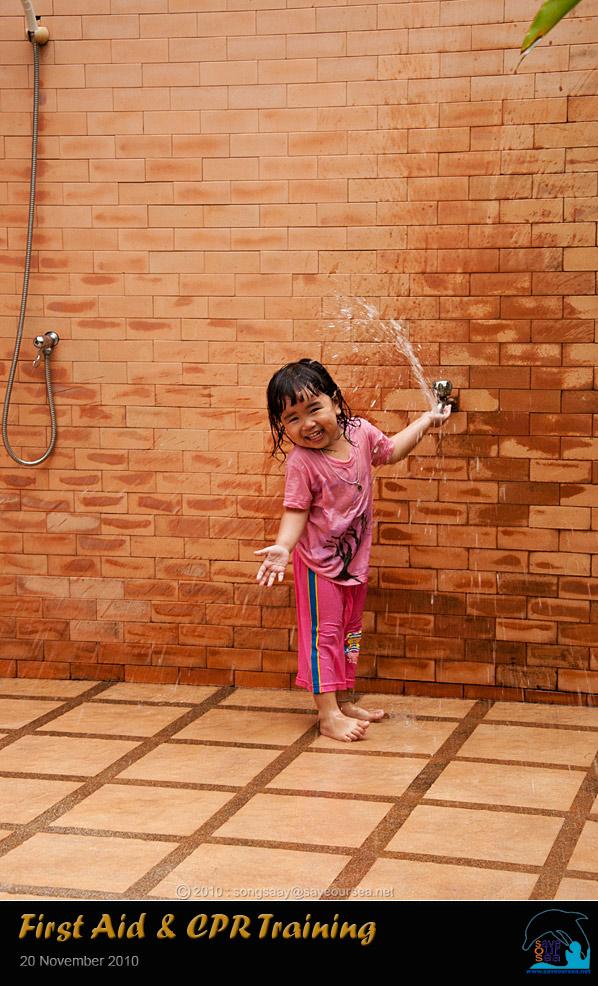 เปียกคนเดียวไม่มัน เอานิ้วอุดก๊อกให้มันพุ่งใส่ลุงที่เดินมาถ่ายรูปซะเลย ...... มันส์และแสบจริงๆ น้องจอยตอนเล็กๆก็เฮี้ยวอย่างนี้แหล่ะ ยิ่งแหย่ยิ่งมัน พอโตแล้วแหย่ไม่สนุก เมื่อไหร่ลูกๆมันจะผลิตหลานเฮี้ยวๆมาให้ปู่ย่าตายายเล่นเสียทีน๊อ เอาแบบน้องอันดามันนี่แหล่ะ แสบแค่นี้ก็เหลือหลายแล้ว ... วันหน้ามาบ้านลุงกับป้าใหม่นะ จะให้ว่ายน้ำเก็บเศษใบไม้ให้เข็ดเลย อิๆๆๆ จบ .......