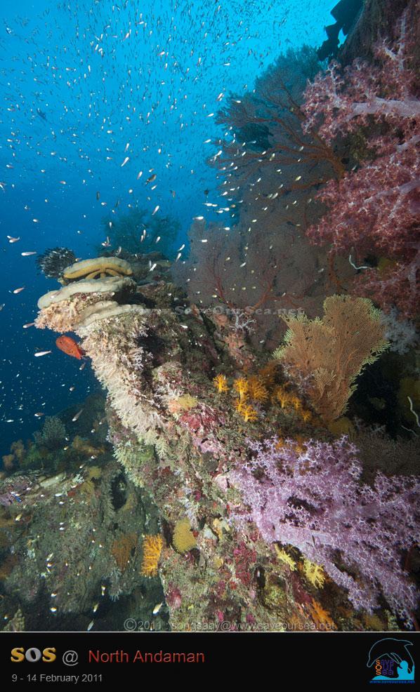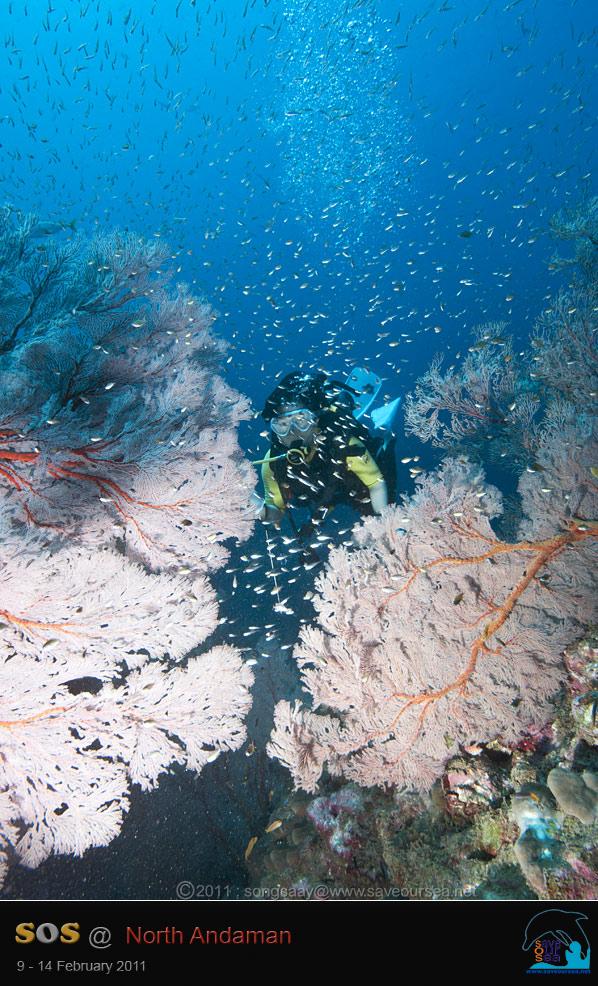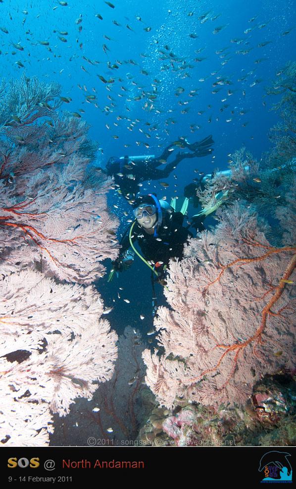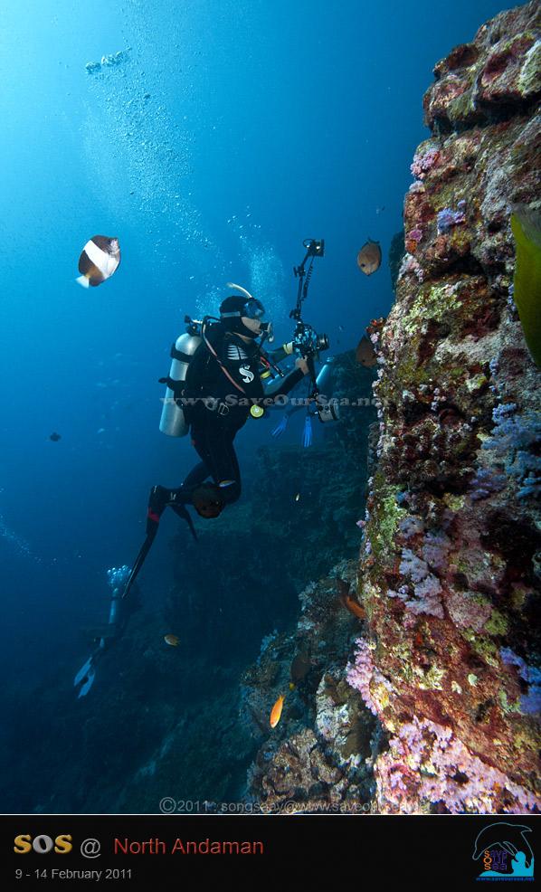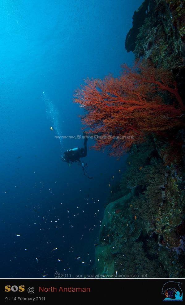 จากเกาะตาชัย....เรามุ่งหน้าสู่เกาะบอน ก่อนเรือจะถึงเกาะบอน....น้องชายได้มาบอกข่าวดีว่า มีกระเบนราหูสองตัว ว่ายเล่นอยู่ที่เกาะบอน เรารีบแต่งตัวเตรียมดำน้ำกันอย่างเร็วรี่ และเมื่อเรือถึงเกาะบอน พวกเราก็ทะยอย กระโดดลงน้ำ ลงไปไม่ทันไรก็มีกระเบนราหูโฉบมาให้เห็นกลางน้ำแล้ว แต่ไกลซะจนสองสายจับภาพไม่ได้ เราเลยว่ายเรียบแนวแหลมไปเรื่อยๆ เพื่อสำรวจแนวปะการังของเกาะบอน ภาพที่เราเห็น ทำใฟ้รู้สึกเศร้าอยู่ไม่น้อย เพราะปะการังอ่อนสีหวานๆของเกาะบอน หายไปมากกว่าปีที่ผ่านๆมา...