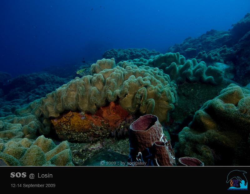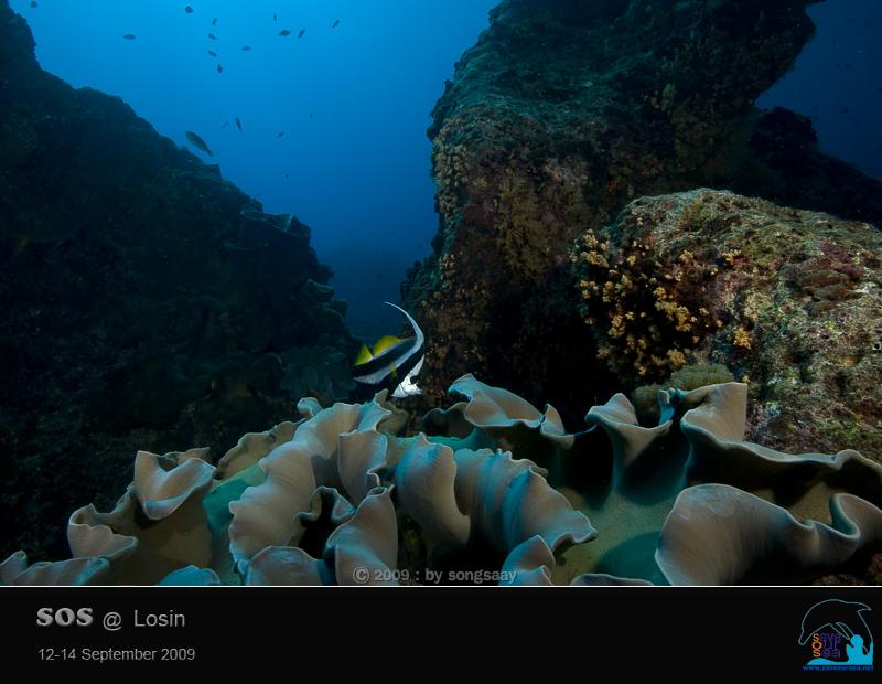 สายชลตกหลุมรักดงปะการังหนังที่อยู่กันอย่างหนาแน่น และแต่ละตัวใหญ่ยักษ์ขนาดอ่างอาบน้ำ ที่ไม่ค่อยจะได้เห็นที่ไหนมากนัก ปลาโนรีครีบยาวที่เรามักจะเห็นเป็นฝูง แต่ที่โลซินมีให้เห็นอยู่เพียงตัวเดียว ที่ว่ายวนเวียนดูดกินตัวโพลิบของปะการังหนัง ที่หลุบซ่อนตัวอยู่ ด้วยท่าทีที่สบายอกสบายใจ ไม่เห็นจะเดือดเนื้อร้อนใจเลยนะคะ....ที่ต้องอยู่อย่างโดดเดี่ยวเดียวดาย..