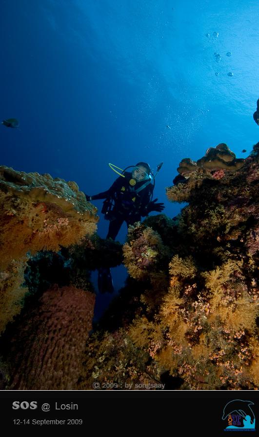 โลซินด้านเหนือ ถ้าถามว่า....ใต้น้ำบริเวณไหนของโลซินที่มีสภาพสวยงามและสมบูรณ์ที่สุด เราตอบได้ทันทีว่า ต้องเป็น "ด้านเหนือ" ของโลซินสิคะที่สวยงามและสมบูรณ์ที่สุด เกือบทุกไดฟ์ที่เราไปดำน้ำที่โลซิน....ไม่ว่าจะเริ่มดำน้ำทางด้านตะวันออกหรือตะวันตก กระแสน้ำมักจะพาเราไหลลิ่วๆไปจบการดำน้ำอยู่ทางด้านเหนือของกองหินโลซินเสมอ ในวันแรกของการดำน้ำ....เราจึงได้มีโอกาสได้เห็นความงามของแนวปะการังที่สวยงาม สมบูรณ์ และหลากหลายด้วยสรรพชีวิตของโลซินอย่างเต็มตาและอิ่มในอารมณ์