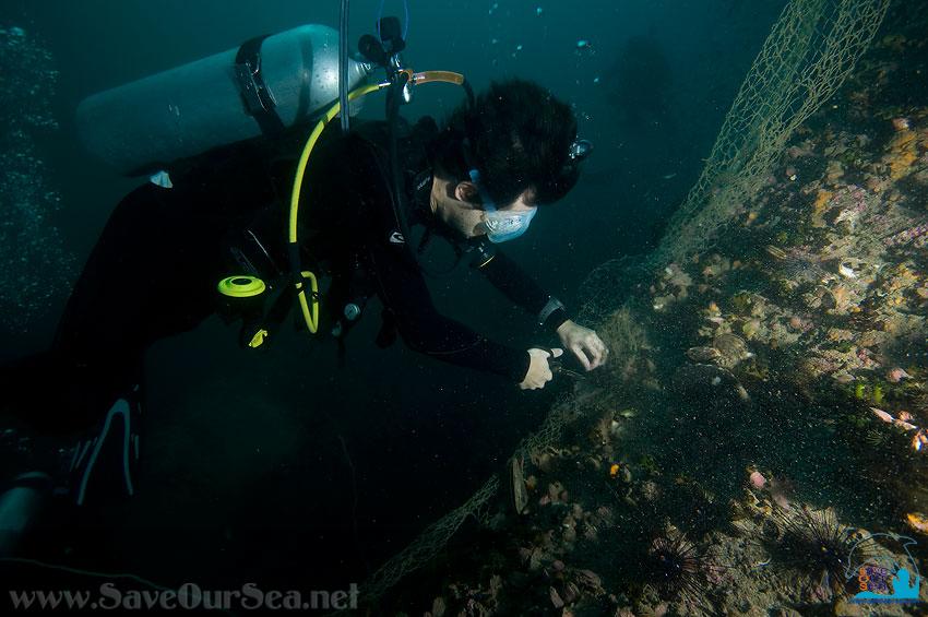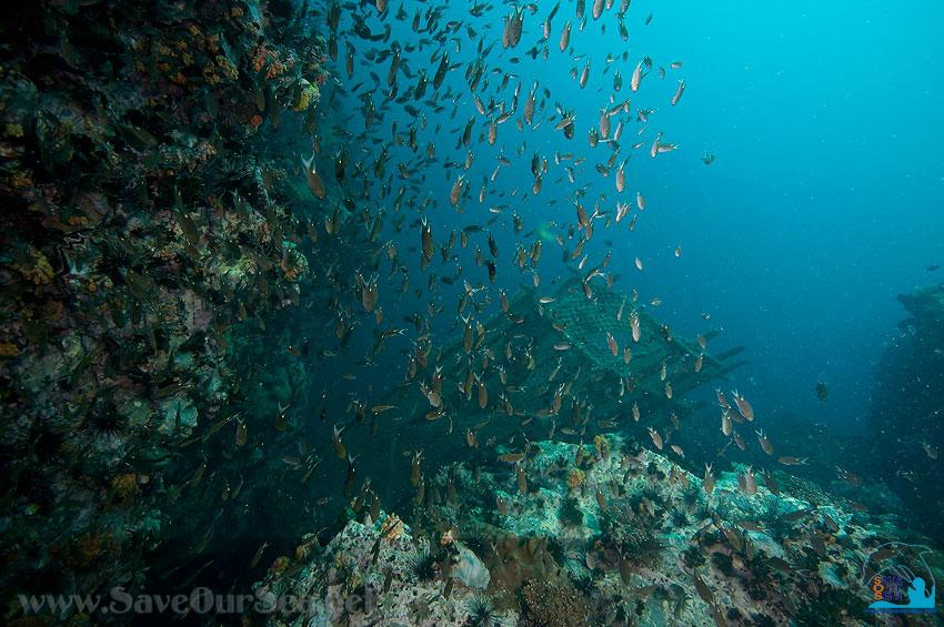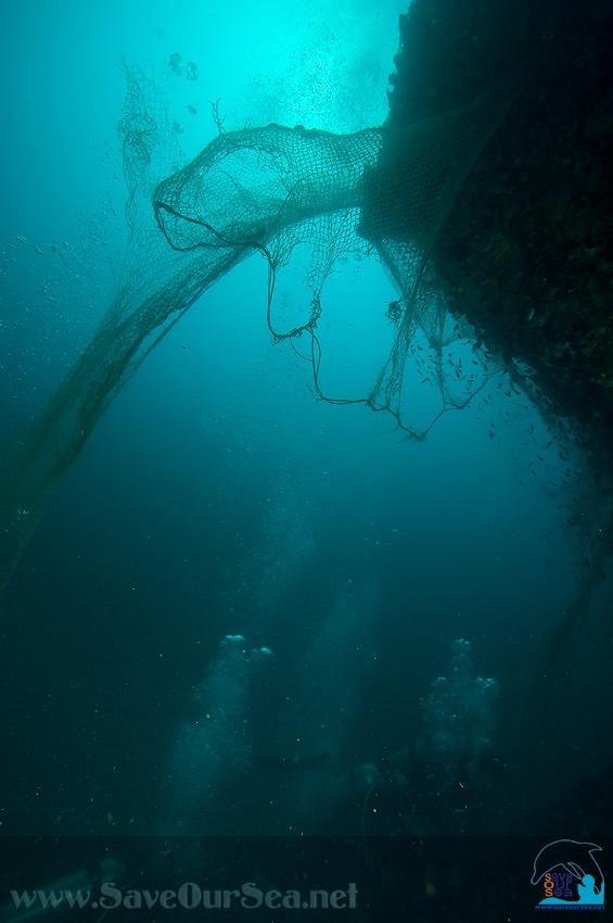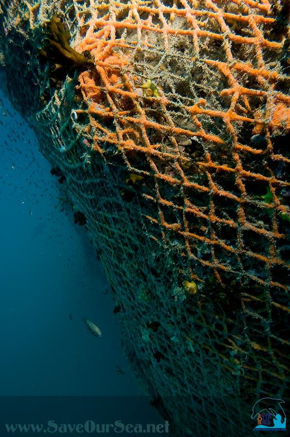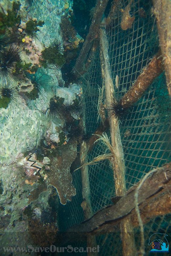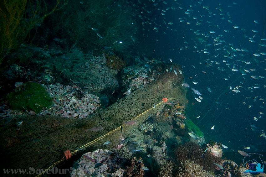 แต่สภาพของมันแปรเปลี่ยนไปมาก จนเราคิดว่าคงไม่ต้องเก็บมันขึ้นมา เพราะนอกจากมีสิ่งมีชีวิตเกาะติดมากมายแล้ว บรรดาปะการังหลายชนิดได้งอกแตกช่อแตกกิ่งลอดตาของอวนขึ้นมาใหม่เต็มไปหมด