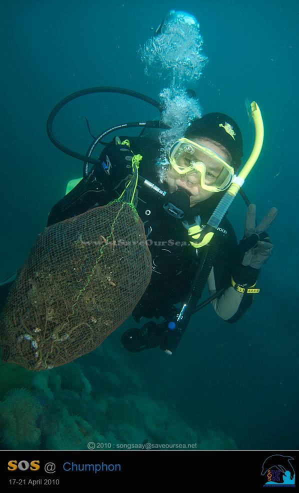 รายงานผลโครงการเก็บขยะ / ตัดอวน / Reef Watch ที่ จ.ชุมพร เดือนมิถุนายน 2553