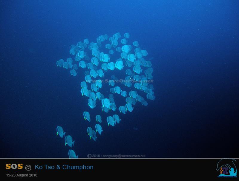 โอ้....ปลาหูช้างหรือปลาค้างคาว (Batfish) ฝูงใหญ่มาก รวมกลุ่มว่ายไปว่ายมาอยู่นั่นเอง.... น่ารักจริงๆเลยค่ะ...