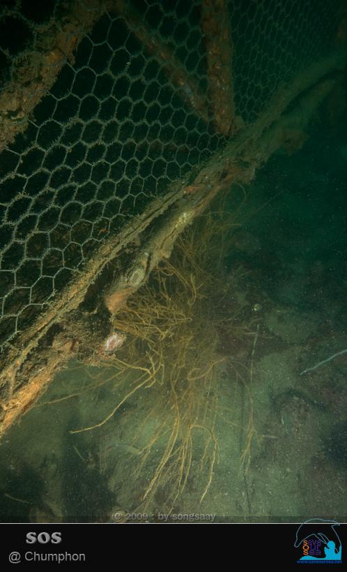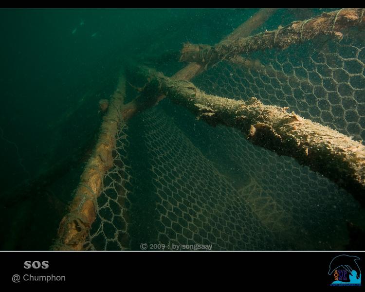 ลอบขนาดใหญ่ยักษ์อย่างน้อยสองอันถูกทิ้งโครมลงบนกอปะการังดำ แล้วก็ถูกทิ้งร้างอยู่อย่างนั้น จนปลาที่ติดค้่งอยู่ล้นลอบตายไปบ้าง ที่เหลืออยู่ได้อาศัยเนื้อของเพื่อนที่ตายไปเป็นอาหารยังชีพ