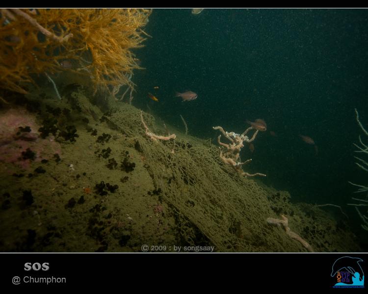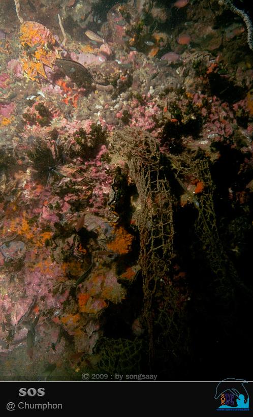 เสียดาย......ที่สองสายได้พบอวนผืนใหญ่มหึมา พาดผ่านอยู่หน้าถ้ำใหญ่ (ที่ลึก...กว้าง.....และดูลึกลับ) เมื่อเราอยู่กันเพียงสองคน และขณะนั้นใกล้หมดเวลาที่เราจะดำน้ำแล้ว
