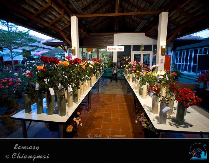 สนามโล่งระหว่างอาคาร กลายเป็นที่ตั้งกุหลาบกระถางที่จะส่งเข้าประกวด และที่ผู้ปลูกนำมาขาย วางแน่นขนัดเต็มไปหมด เหมือนสวนกุหลาบจำลองมี่สวยงามน่าชม...