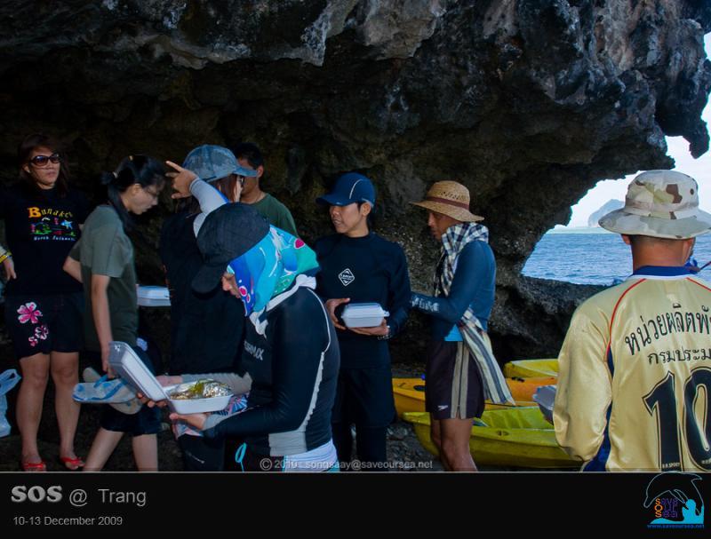 ร้อน หนาว เหนื่อย และหิว ..... แจกข้าวกล่องจากเลตรัง และลงมือกิน ...