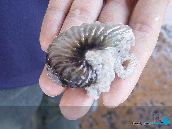 เอารูปหอยงวงช้างกระดาษ (Paper nautilus) มาให้ดูค่ะ แต่เสียดายเป็นตัวที่ตายแล้ว เจอที่แพปลาในจังหวัดภูเก็ตค่ะ