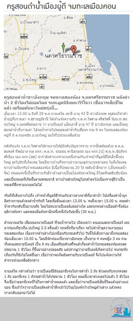 ครูสอนดำน้ำเมืองผู้ดี จมทะเลเมืองคอน