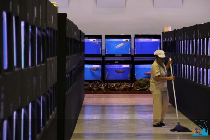 ปลาคราฟที่เอามาใส่ตู้ไว้กลางงานและประกวดหมอสีครอสบรีด