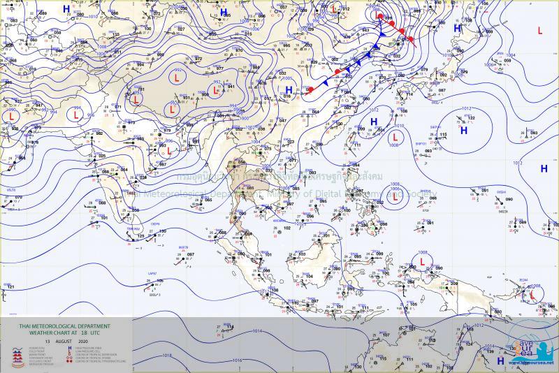 สภาวะอากาศทั่วไป พยากรณ์อากาศ 24 ชั่วโมงข้างหน้า มรสุมตะวันตกเฉียงใต้กำลังปานกลางพัดปกคลุมทะเลอันดามัน ประเทศไทย และอ่าวไทย ในขณะที่ลมตะวันออกเฉียงใต้ยังคงพัดปกคลุมภาคตะวันออกเฉียงเหนือตอนล่าง ภาคตะวันออก และอ่าวไทย ทำให้มีฝนตกหนักบางพื้นที่ในภาคเหนือ ภาคตะวันออกเฉียงเหนือ ภาคกลาง ภาคตะวันออก และภาคใต้ ขอให้ประชาชนที่อาศัยในพื้นที่เสี่ยงภัยบริเวณดังกล่าว ระวังอันตรายจากฝนตกหนักและฝนที่ตกสะสมไว้ด้วย กรุงเทพมหานครและปริมณฑล เมฆเป็นส่วนมาก กับมีฝนฟ้าคะนอง ร้อยละ 60 ของพื้นที่ และมีฝนตกหนักบางแห่ง อุณหภูมิต่ำสุด 25-27 องศาเซลเซียส อุณหภูมิสูงสุด 33-36 องศาเซลเซียส ลมตะวันตกเฉียงใต้ ความเร็ว 10-25 กม./ชม. คาดหมาย ในช่วงวันที่ 13 - 19 ส.ค. 63 มรสุมตะวันตกเฉียงใต้ที่พัดปกคลุมทะเลอันดามัน และประเทศไทยจะมีกำลังอ่อนลง ในขณะที่มีลมตะวันออกเฉียงใต้พัดปกคลุมบริเวณภาคตะวันออกเฉียงเหนือตอนล่าง ภาคตะวันออก และอ่าวไทย ลักษณะเช่นนี้ทำให้มีฝนตกหนักบางแห่งบริเวณภาคเหนือ ภาคตะวันออกเฉียงเหนือตอนล่าง ภาคตะวันออก และภาคใต้ สำหรับคลื่นลมบริเวณทะเลอันดามันและอ่าวไทยจะมีกำลังอ่อนลง ข้อควรระวัง ขอให้ประชาชนในพื้นที่เสี่ยงภัยบริเวณภาคเหนือตอนล่าง ภาคตะวันออก และภาคใต้ ระวังอันตรายจากฝนตกหนักและฝนที่ตกสะสมไว้ด้วย แก้ไขครั้งสุดท้ายโดย สายน้ำ : 15-08-2020 เมื่อ 02:50 |