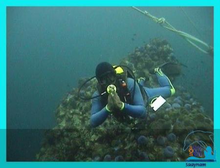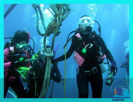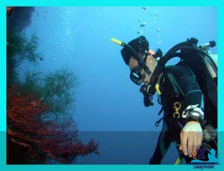 เมื่อเสร็จสิ้นการพักน้ำ ก่อนจะลอยตัวขึ้น ศีรษะตั้งตรง ... แหงนมองขึ้นไปรอบๆ เพื่อหลีกเลี่ยงอันตรายบนผิวน้ำ เช่น เรือ หรือนักดำน้ำคนอื่นๆ แล้วเริ่มเตะตีนกบ (ไปด้านหน้าและหลัง) อย่างช้าๆ โดยไม่ต้องเป่าลมเข้า BC ตรงกันข้าม เรากลับต้องคอยปล่อยลมออกจาก BC ตลอดเวลา เพื่อไม่ให้ลอยตัวขึ้นเร็วเกินไปจนควบคุมไม่ได้ จำไว้ว่า ความกดจะเปลี่ยนแปลงเร็วมากในช่วง 15 ฟุตห่างจากผิวน้ำ ดังนั้น เพื่อความปลอดภัย เราควรควบคุมความเร็วในการลอยตัวขึ้นให้ได้ประมาณ 30 ฟุตต่อนาที ตลอดทางจนถึงผิวน้ำนะครับ ขอจบกันดื้อๆแบบนี้หล่ะครับ ผมหวังว่าเรื่องที่นำมาเล่าสู่กันฟังครั้งนี้ คงสะกิดต่อมขี้เกียจของหลายๆคนได้พอสมควร แต่เรื่องการทำ Safety Stop เพียงแค่ 5 นาทีก่อนขึ้นเรือ อย่าละเลยกันเลยครับ ถ้าไม่มีเหตุจำเป็นหรือฉุกเฉินจริงๆ อย่าลืมว่า ชีวิตและสุขภาพของเรามีค่ากว่า 5 นาทีสุดท้ายของการดำน้ำทุกไดฟ์มากมายนัก แล้วพบกันใหม่ในเรื่องต่อไปครับ แสดงแบบโดยคุณ lara13 ระหว่างทำ safety stop เธอแก้เหงาด้วยการถ่ายภาพไปเรื่อยๆ เช่นเดียวกับคุณสายชล ที่ระหว่างทำ safety stop เธอไม่เคยปล่อยเวลาให้ผ่านไปโดยไร้ค่าแม้แต่นาทีเดียว