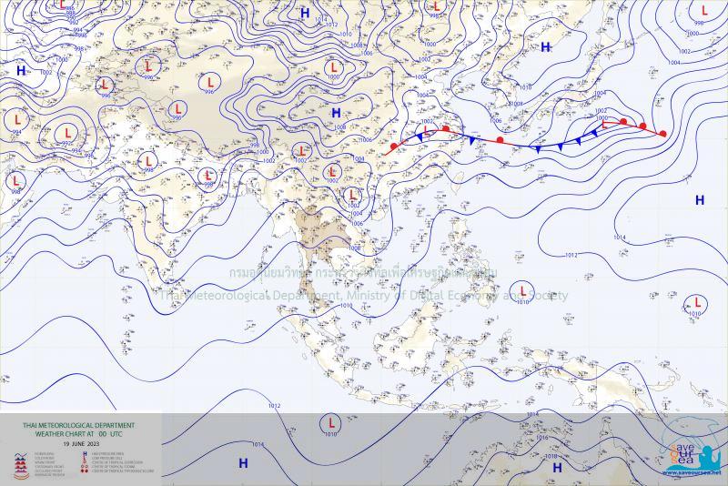 สภาวะอากาศทั่วไป พยากรณ์อากาศ 24 ชั่วโมงข้างหน้า มรสุมตะวันตกเฉียงใต้กำลังปานกลางพัดปกคลุมทะเลอันดามัน ประเทศไทย และอ่าวไทย ประกอบกับมีหย่อมความกดอากาศต่ำปกคลุมบริเวณประเทศเวียดนามตอนบน ลักษณะเช่นนี้ทำให้ประเทศไทยยังคงมีฝนฟ้าคะนองและมีฝนตกหนักบางแห่ง ส่วนมากบริเวณด้านรับมรสุม ขอให้ประชาชนในบริเวณดังกล่าวระวังอันตรายจากฝนตกหนักที่จะเกิดขึ้นไว้ด้วย สำหรับคลื่นลมบริเวณทะเลอันดามันและอ่าวไทยมีกำลังปานกลาง โดยทะเลอันดามันตอนบนมีคลื่นสูง 1-2 เมตร บริเวณที่มีฝนฟ้าคะนองคลื่นสูงมากกว่า 2 เมตร ส่วนบริเวณทะเลอันดามันตอนล่างและอ่าวไทย ทะเลมีคลื่นสูงประมาณ 1 เมตร บริเวณที่มีฝนฟ้าคะนองคลื่นสูง 1-2 เมตร ขอให้ชาวเรือในบริเวณดังกล่าวเดินเรือด้วยความระมัดระวังและหลีกเลี่ยงการเดินเรือในบริเวณที่มีฝนฟ้าคะนองไว้ด้วย กรุงเทพมหานครและปริมณฑล มีฝนฟ้าคะนอง ร้อยละ 60 ของพื้นที่ และมีฝนตกหนักบางแห่ง อุณหภูมิต่ำสุด 27-29 องศาเซลเซียส อุณหภูมิสูงสุด 33-36 องศาเซลเซียส ลมตะวันตกเฉียงใต้ ความเร็ว 10-25 กม./ชม. คาดหมาย ในช่วงวันที่ 18 - 22 มิ.ย. 66 มรสุมตะวันตกเฉียงใต้กำลังปานกลางพัดปกคลุมทะเลอันดามัน ประเทศไทย และอ่าวไทย ประกอบกับมีหย่อมความกดอากาศต่ำปกคลุมบริเวณประเทศเวียดนามตอนบน และอ่าวตังเกี๋ย ลักษณะเช่นนี้ทำให้ประเทศไทยยังคงมีฝนฟ้าคะนองเกิดขึ้นได้ ส่วนมากบริเวณด้านรับมรสุม และมีฝนตกหนักบางแห่งในช่วงวันที่ 18 - 19 มิ.ย. 66 ในภาคตะวันออกเฉียงเหนือ ภาคกลาง ภาคตะวันออก และภาคใต้ ส่วนในช่วงวันที่ 23 - 24 มิ.ย. 66 จะมีร่องมรสุมพาดผ่านตอนบนภาคเหนือ และประเทศลาวตอนบน เข้าสู่หย่อมความกดอากาศต่ำที่ปกคลุมบริเวณชายฝั่งประเทศเวียดนามตอนบน และอ่าวตังเกี๋ย ประกอบกับมรสุมตะวันตกเฉียงใต้กำลังปานกลางยังคงพัดปกคลุมทะเลอันดามัน ประเทศไทย และอ่าวไทย ลักษณะเช่นนี้ทำให้ประเทศไทยจะมีฝนเพิ่มขึ้น และมีฝนตกหนักบางแห่งในภาคเหนือ ภาคตะวันออกเฉียงเหนือ และภาคตะวันออก สำหรับคลื่นลมบริเวณทะเลอันดามันและอ่าวไทยมีกำลังปานกลาง โดยบริเวณทะเลอันดามันตอนบน ทะเลมีคลื่นสูง 1 - 2 เมตร บริเวณที่มีฝนฟ้าคะนองคลื่นสูงมากกว่า 2 เมตร ส่วนทะเลอันดามันตอนล่างและอ่าวไทย ทะเลมีคลื่นสูงประมาณ 1 เมตร บริเวณที่มีฝนฟ้าคะนองคลื่นสูง 1 - 2 เมตร ข้อควรระวัง ในช่วงวันที่ 18 ? 19 และ 23 ? 24 มิ.ย. 66 ขอให้ประชาชนระวังอันตรายจากฝนตกหนักที่อาจจะเกิดขึ้นในระยะนี้ไว้ด้วย ส่วนชาวเรือบริเวณทะเลอันดามันและอ่าวไทยควรเดินเรือด้วยความระมัดระวังและหลีกเลี่ยงการเดินเรือในบริเวณที่มีฝนฟ้า