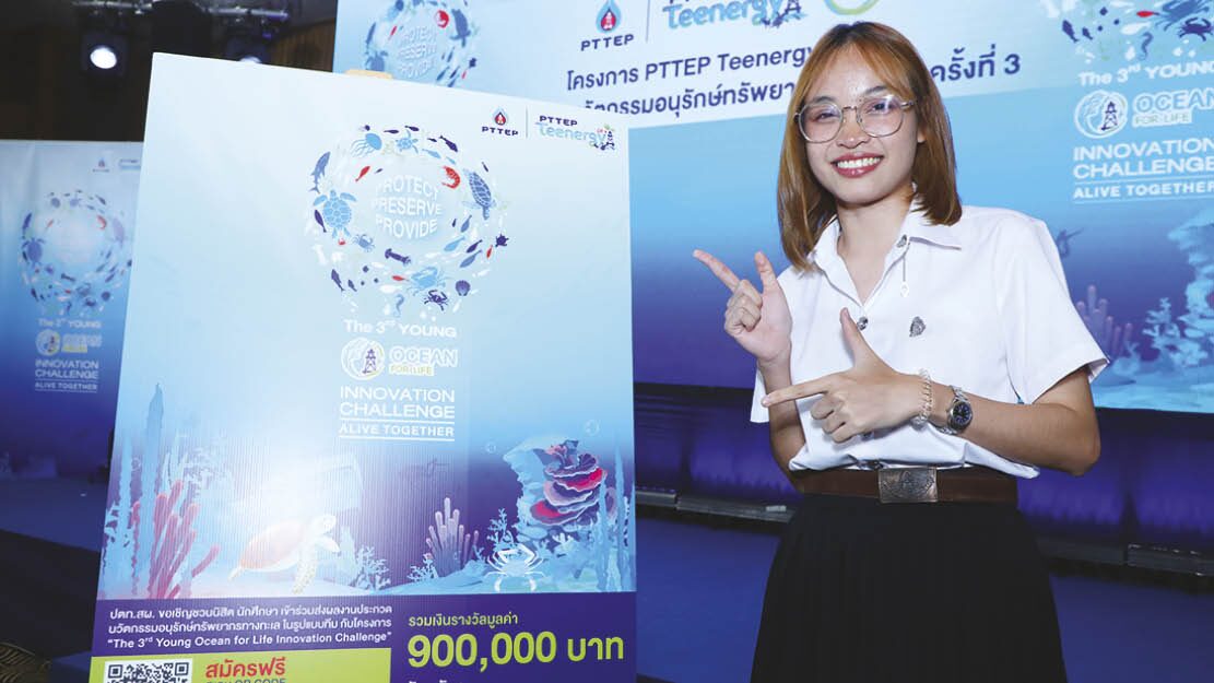 ไอคิวทะลุฟ้า - ดวลไอเดียคนรุ่นใหม่ อนุรักษ์ท้องทะเลไทย ![]() ด้วยเล็งเห็นศักยภาพและพลังความคิดสร้างสรรค์ของคนรุ่นใหม่ บริษัท ปตท.สำรวจและผลิตปิโตรเลียม จำกัด (มหาชน) หรือ ปตท.สผ. จัดการประกวดนวัตกรรมอนุรักษ์ทรัพยากรทางทะเล ครั้งที่ 3 ภายใต้แนวคิด ?ทะเลเพื่อชีวิต? (Ocean for Life) เชิญชวนนิสิต นักศึกษาระดับ ปวส. ถึงปริญญาตรี ร่วมสร้างสรรค์ผลงานนวัตกรรมที่เป็นประโยชน์ต่อการอนุรักษ์ทรัพยากรทางทะเล ชิงเงินรางวัลรวมมูลค่า 900,000 บาท ภายใต้โครงการ PTTEP Teenergy ปีที่ 9 นายอัครพันธ์ ทวีศักดิ์ หรือ ไอซ์ บัณฑิตจากมหาวิทยาลัยเทคโนโลยีพระจอมเกล้าธนบุรี ตัวแทนทีม Green Grove รองชนะเลิศอันดับ 1 หัวข้อ Preserve ในการประกวดครั้งที่ 1 ปี 2564 จากผลงาน IMPOT ชุดปลูกโกงกางอัจฉริยะเพื่อฟื้นฟูป่าชายเลนอย่างมีระบบ เล่าว่าได้แนวคิดมาจากถุงเพาะกล้าไม้พลาสติกที่ส่วนใหญ่ถูกทิ้งไว้หลังจากปลูกป่าชายเลนเสร็จ เป็นจุดเริ่มต้นของไอเดียที่อยากช่วยแก้ไขปัญหานี้ด้วยการให้คนที่ปลูกป่าชายเลนเห็นถึงความสำคัญในการอนุรักษ์ทรัพยากรที่ทุกคนสามารถช่วยทำให้เกิดขึ้นได้ง่ายๆ เพียงเลือกใช้วัสดุที่เป็นมิตรต่อสิ่งแวดล้อม มาผลิตเป็นกระถางสำหรับบรรจุต้นไม้พร้อมปลูก เพื่อนำไปใช้แทนถุงพลาสติกแบบเดิม ![]() ด้าน น.ส.อพินญา คงคาเพชร หรือ น้องตาล นักศึกษาจากมหาวิทยาลัยเทคโนโลยีพระจอมเกล้าธนบุรี ตัวแทนทีม Scraber ผู้ชนะเลิศ หัวข้อ Provide ในการประกวดครั้งที่ 1 ปี 2564 จากผลงาน The Automatic Warning of Crab Molting Detection by Application เล่าว่าความคิดแรกเริ่มต้องการช่วยเหลือธุรกิจของครอบครัวเพื่อนซึ่งทำฟาร์มปูนิ่ม แต่เมื่อส่งผลงานเข้าประกวดและได้รับรางวัลชนะเลิศ ทำให้ได้รับโอกาสที่ดีจาก ปตท.สผ. ต่อยอดผลงาน เนื่องจากปูนิ่มเป็นหนึ่งในสัตว์น้ำเศรษฐกิจของชุมชนในจังหวัดสตูล สำหรับแอพพลิเคชั่นระบบการแจ้งเตือนการตรวจจับการลอกคราบปูที่คิดค้นขึ้นนั้น นำไปช่วยเหลือในการดูและจับการลอกคราบของปูด้วยตาเปล่าในช่วงกลางคืน เครื่องมือนี้ช่วยชุมชนประหยัดเวลา กำลังคน และบริหารจัดการฟาร์มได้สะดวกยิ่งขึ้น สามารถต่อยอดนำไปใช้กับปูชนิดอื่นๆ เพื่อขยายตลาดและสร้างรายได้ให้ชุมชนมากยิ่งขึ้น ![]() กวินธิดา ปิดท้ายที่ น.ส.กวินธิดา ปิ่นทอง หรือ น้องฟอร์แทรน นิสิตจากมหาวิทยาลัยเกษตรศาสตร์ ตัวแทนทีม Sea the Future ผู้ชนะเลิศหัวข้อ Provide ในการประกวดครั้งที่ 2 ปี 2565 จากผลงาน Fisherman?s Friend Application เชื่อมโยงเครือข่ายชาวประมงชายฝั่ง กล่าวเชิญชวนทุกคนส่งผลงานเข้ามาประกวดกันเยอะๆ ถึงแม้จะไม่ได้รับรางวัล แต่มั่นใจว่าทุกคนจะได้รับประสบการณ์ที่ดี ได้รับความรู้ คำแนะนำ จาก
